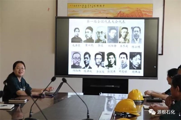 活动一:开展党史教育活动。源根石化党委副书记王春英同志以《追寻红色记忆》为主题,为公司党员、入党积极分子讲授了一堂生动的中国共产党党史课,激励各位党员同志学党史、知党情、跟党走,引导党员牢固坚定共产主义信念,带头实践先锋模范作用,以更加自觉的行动,更加饱满的精神,锐意进取,开拓创新。